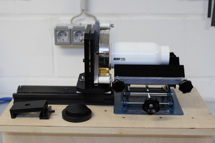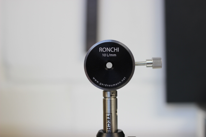 Die folgenden drei Bilder zeigen den Foucault-, den Lyot- und den Ronchi-Adapter. Die Adapter können im gleichen Messaufbau durch einfaches Umstecken gegeneinander getauscht werden.