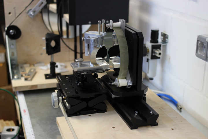 Derzeit sind wir in der Lage, Spiegel bis zu einem Optikdurchmesser von 20" und einer Brennweite von ca. 2 Metern zu prüfen. Nachfolgend Bilder vom Spiegel-Teststand und von der Ross-Null-Linse in korrekter Position vor dem Michelson-Phase-Shifter