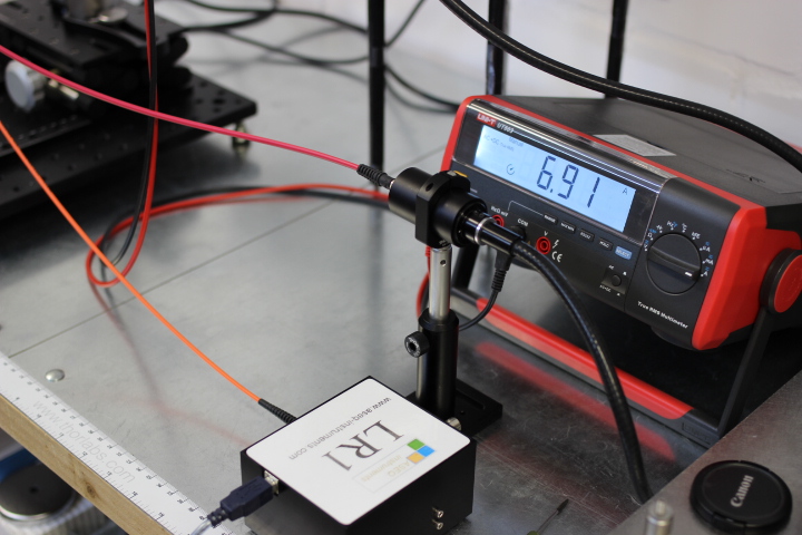 Als Lichtquelle wird eine geregelte Halogen-Kaltlichtquelle eingesetzt, deren Stromstärke mit einem guten, digitalen Multimeter überwacht wird. So wird sichergestellt, dass die Lichtstärke der Quelle während der Messungen konstant gehalten werden kann.