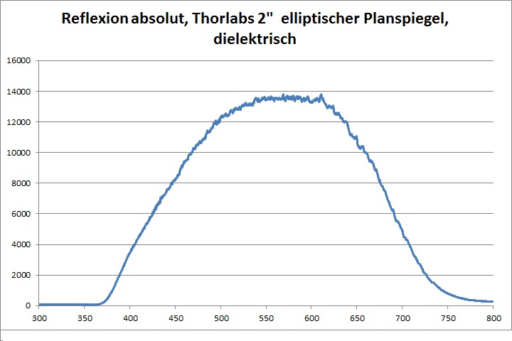 Folgend einige Reflexionsmessungen im oben beschriebenen Aufbau. Als Referenz für die relative Auswertung dient der dielektrisch beschichtete, elliptische Planspiegel von Thorlabs.